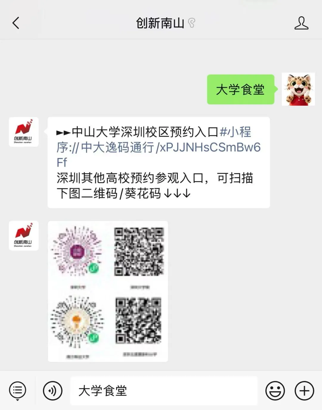 2.在后台回复关键词【大学食堂】即可获取预约通道。
