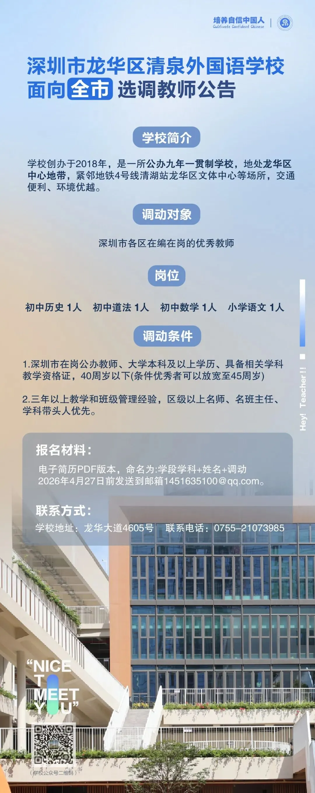 注:应聘时请说明“招聘信息来自深圳代课公众号”。
