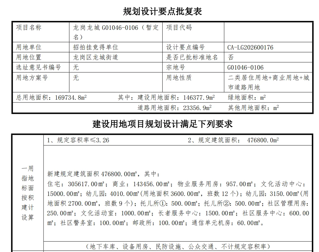 根据出让公告,该地块位于龙岗大运片区,为高标准打造深圳东部中心国际化街区,土地面积近17万平方米,总建筑面积约47.68万平方米,将于5月6日正式出让。