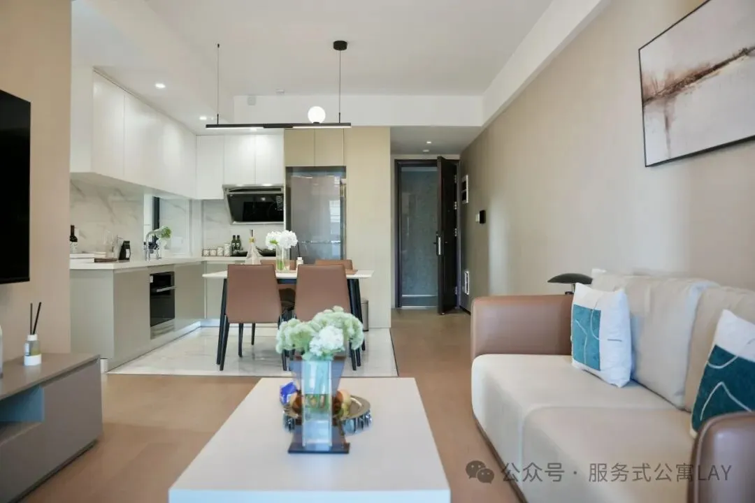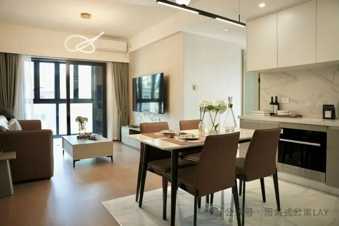 项目总共A/B两个单元,A单元提供69平至87平的小面积为主。B单元以130至170平大面积,一层两户。提供多样化的户型,包括1+1房、两居室、2+1房和3居室等多种房型,合计254间客房。能够满足不同人群的居住需求。所有房型均采用精致装修标准,配备高品质家具家电,大容量冰箱、洗碗机、微波炉、烤箱、厨具和餐具等。特别值得一提的是,厨房不仅设备齐全,还通燃气,这在服务式公寓中相对少见,真正实现"拎包入住"的便捷体验。