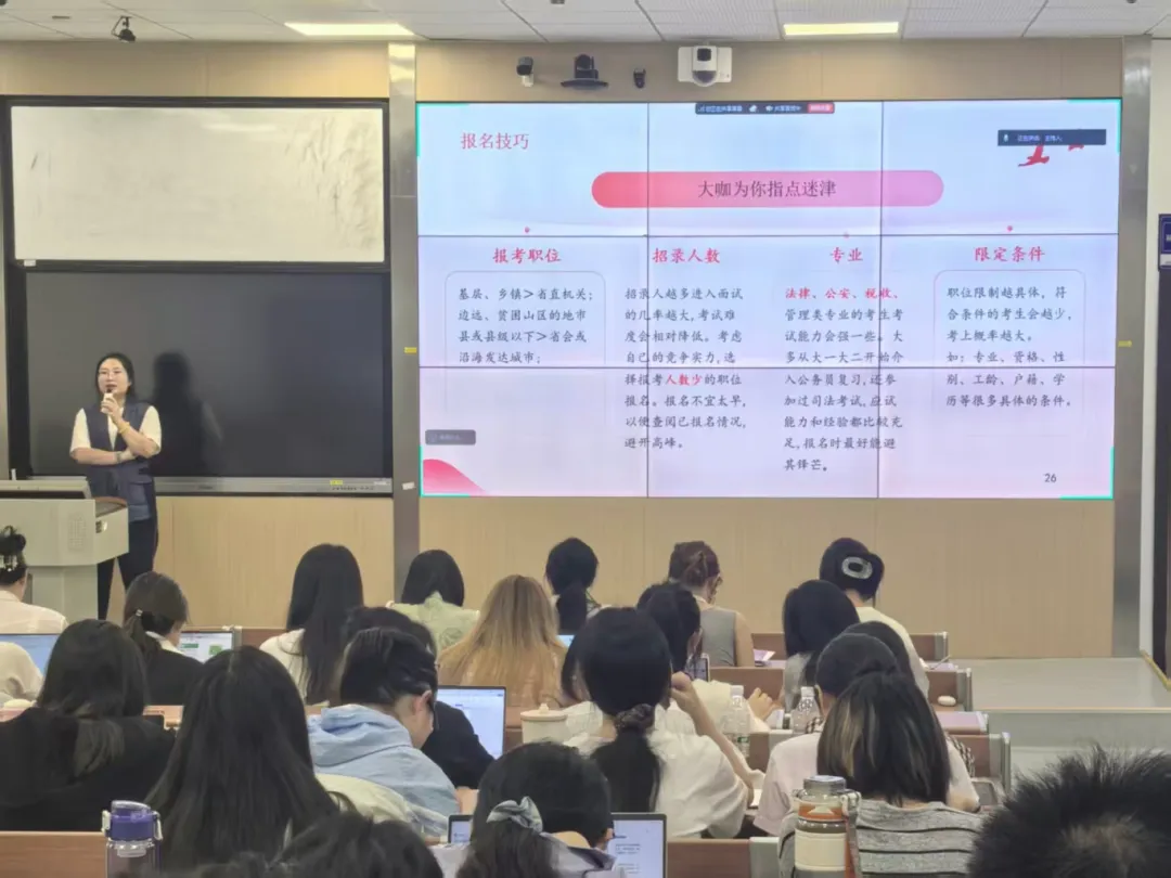 讲座现场,黄老师围绕“公职类招考应试技巧”展开一系列的分享,为同学梳理报名、备考思路,干货满满。