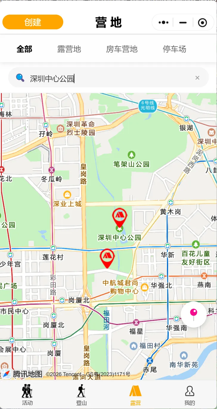 • 营地名称:深圳中心公园(官方帐篷区) • 具体位置:深圳市福田区振华西路1号(无围墙,开放式布局) • 营地类型:城市公园草坪营地,A-E五个区域均有可露营草坪 • 收费标准:完全免费,仅停车位需预约,无需预约入园 • 开放时间:6:00-23:00(22:30停止入园,严禁过夜) • 营地特色:市区核心,交通便利,周边商圈环绕,部分区域可直收外卖。