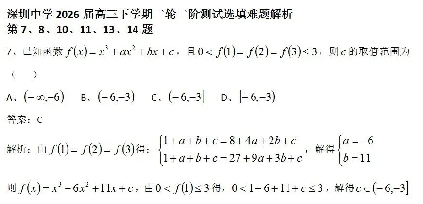2026年成都二诊难题详细解析