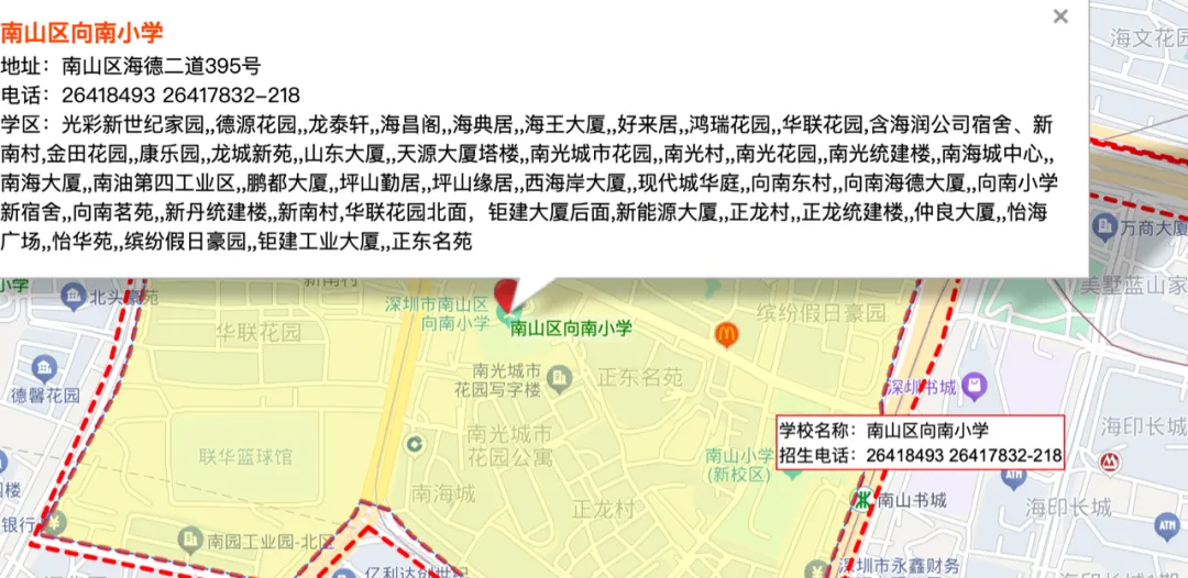 4、对应学区:南山区向南小学、南山区第二外国语学校集团学府中学,学位空置,没有锁定使用。