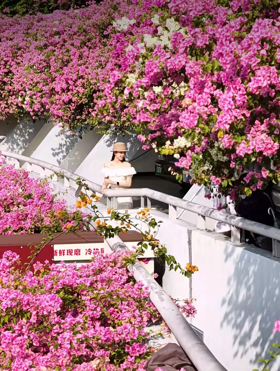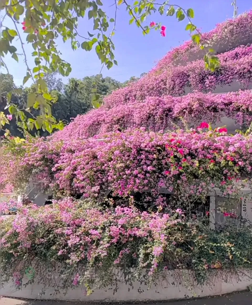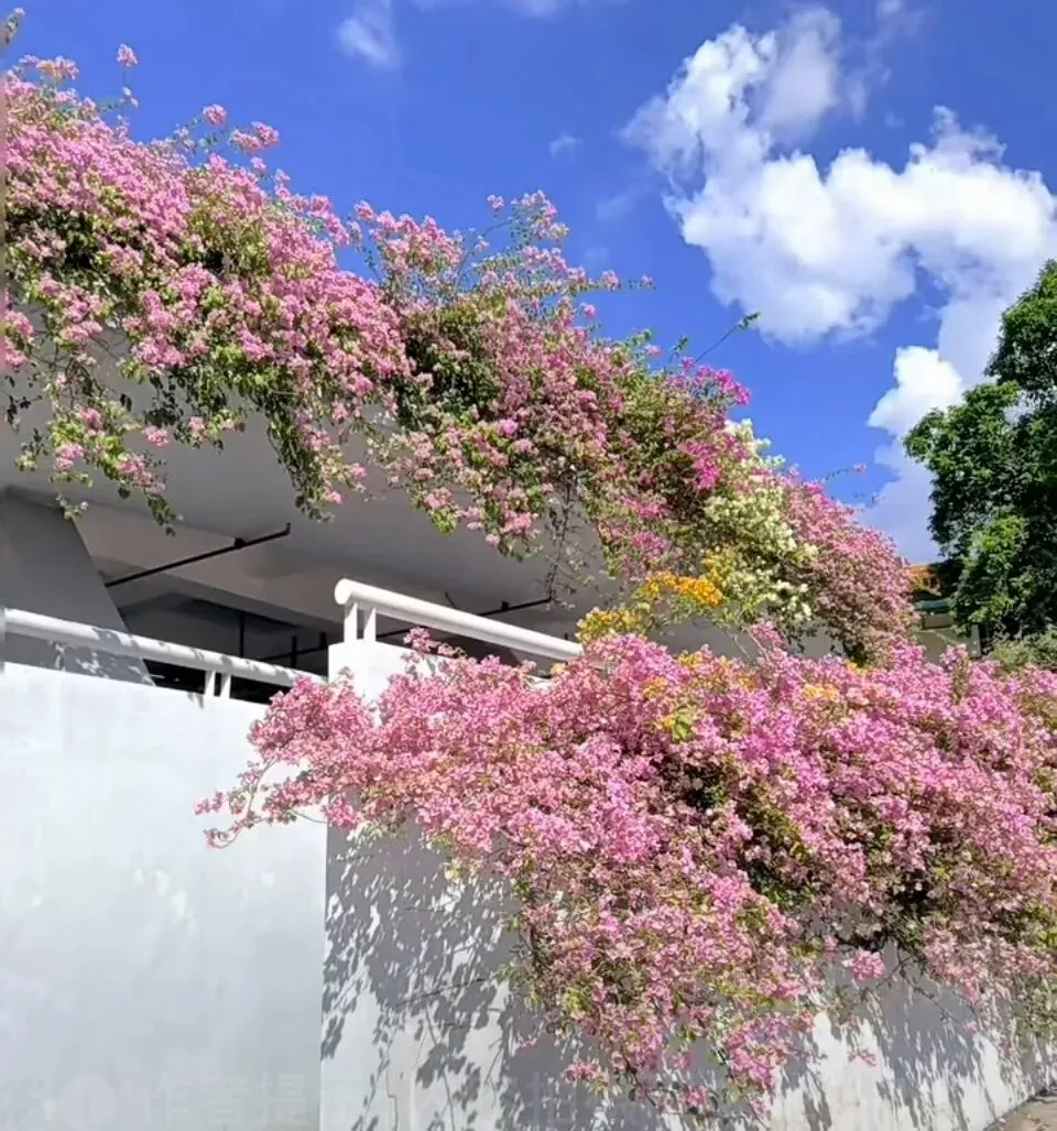 它没有冰冷的钢筋气质,而是被层层叠叠、肆意盛放的三角梅温柔包裹,化作城市里最浪漫的停靠港湾。