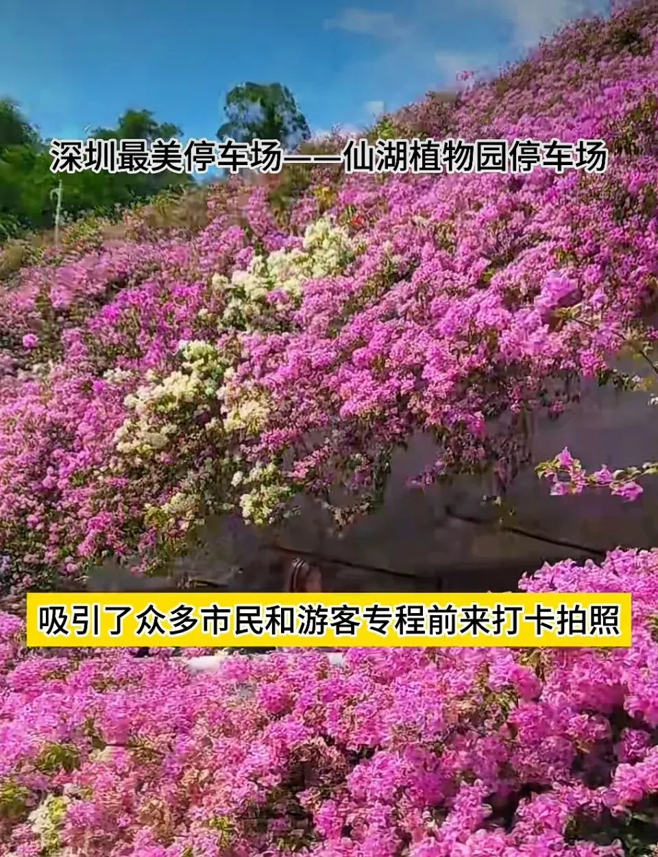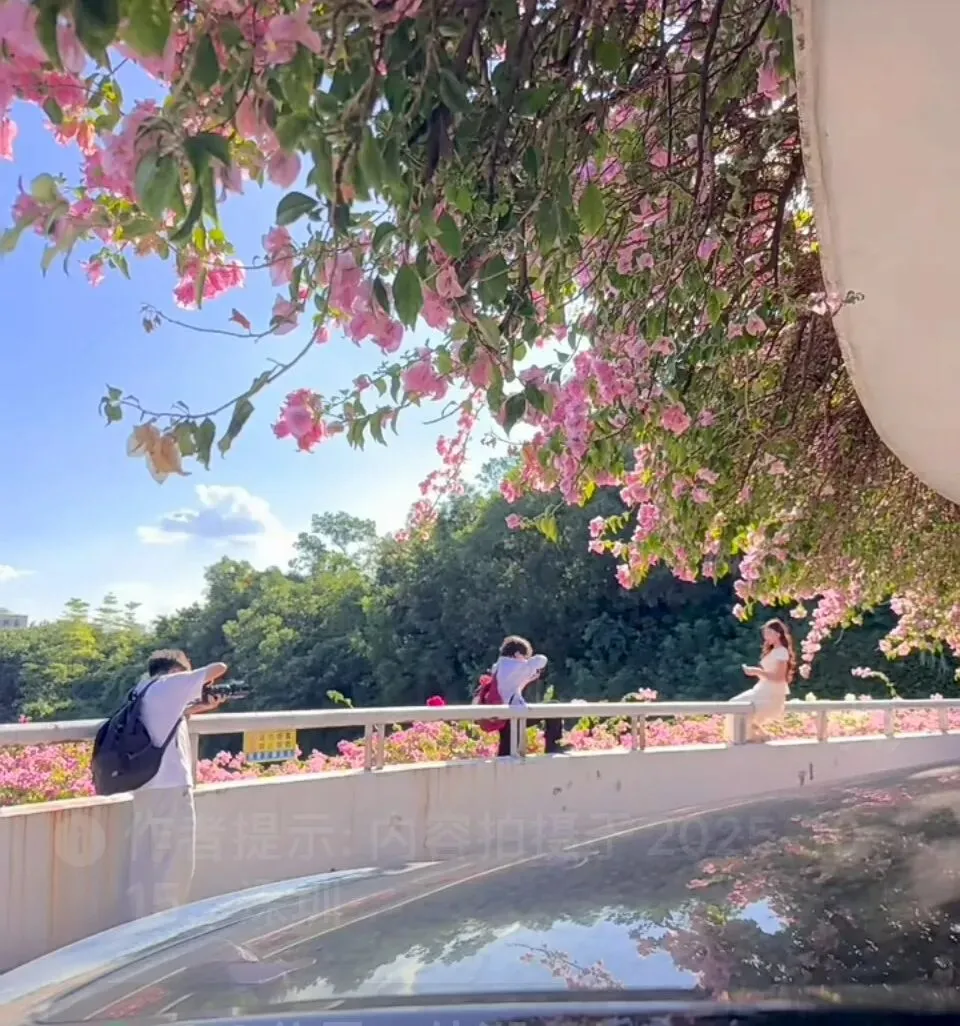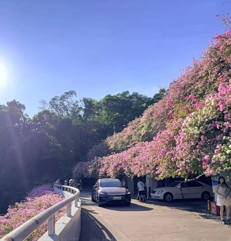 这里不仅是停车的地方,更是深圳人争相打卡的诗意角落。无需进入植物园,站在门外便能邂逅这片免费的浪漫。春秋两季是它最美的时刻,花开两至三季,从暮春到深冬,始终热烈缤纷。