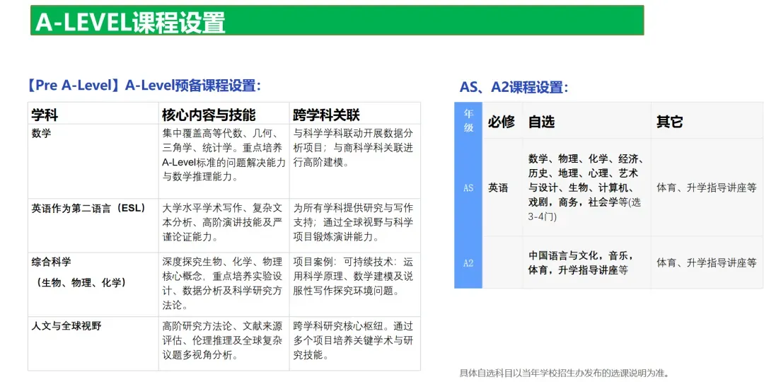 A-Level课程被誉为 “全球大学入学的金牌标准” ,其最大优势在于选课制,学生只需根据兴趣和特长选择3-4门课程深入学习,真正做到扬长避短,尤其适合有明显学科优势的学生。