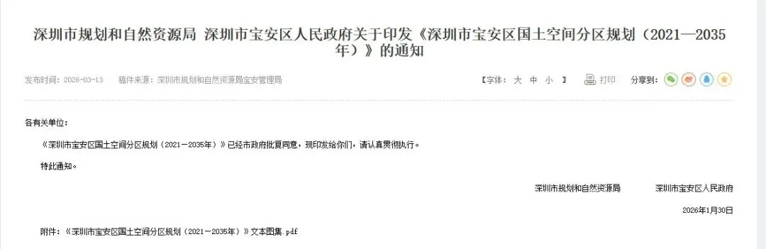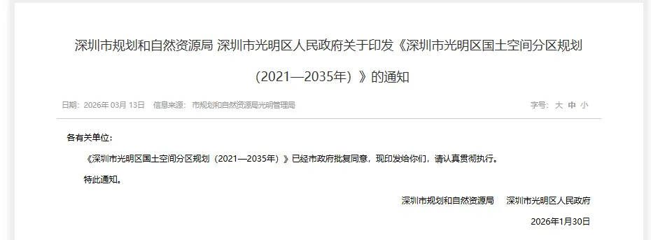 近期,《深圳市宝安区国土空间分区规划(2021—2035年)》和《深圳市光明区国土空间分区规划(2021-2035年)》已获批复同意,深圳市规划和自然资源局、两区政府分别发布公示。