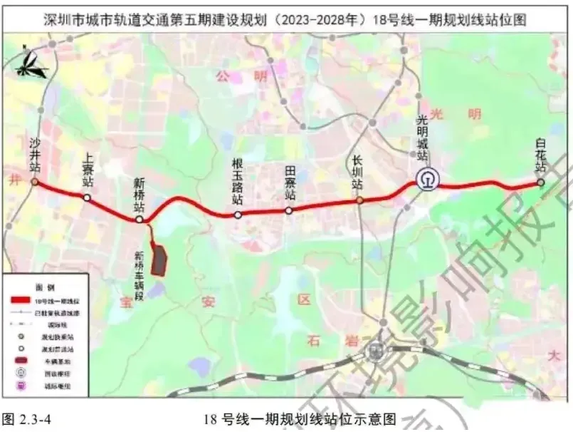 出乎意料的是深圳地铁18号线,在《深圳市宝安区国土空间分区规划(2021—2035年)》里有提到,但在《深圳市光明区国土空间分区规划(2021-2035年)》里却没被提到!