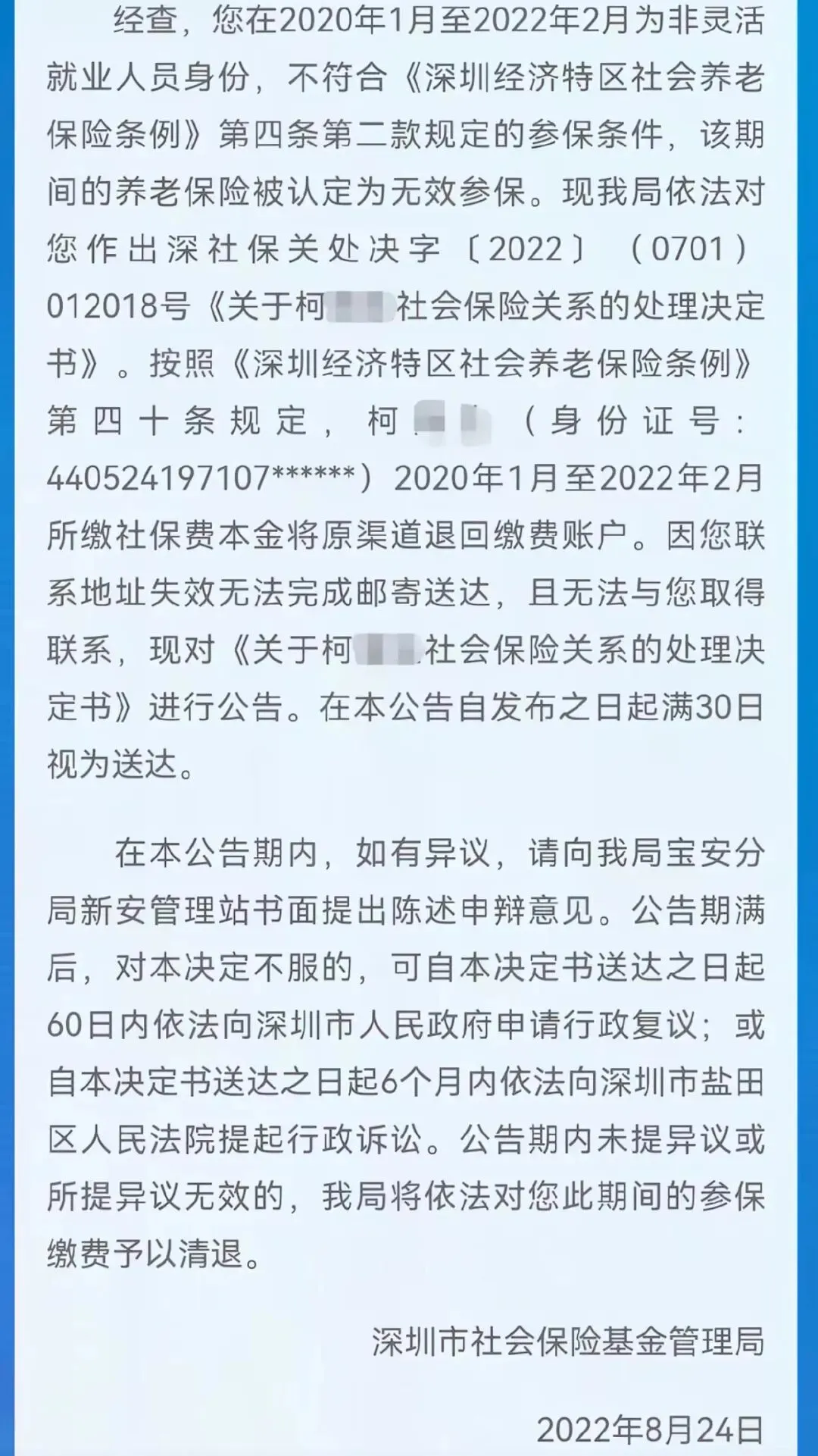 这些案例,都是人不在深圳,却在深圳交灵活就业,因为虚假材料、虚假地址联系不上人导致社保被停,甚至有些社保被清零了,尽管这样还是有很多人会冒着风险去交灵活就业(2)那唯一合规的异地自费交社保的方式是什么呢,就是自己办一个公司执照,相当于自己给自己交,也可以给直系亲属交相关视频如下