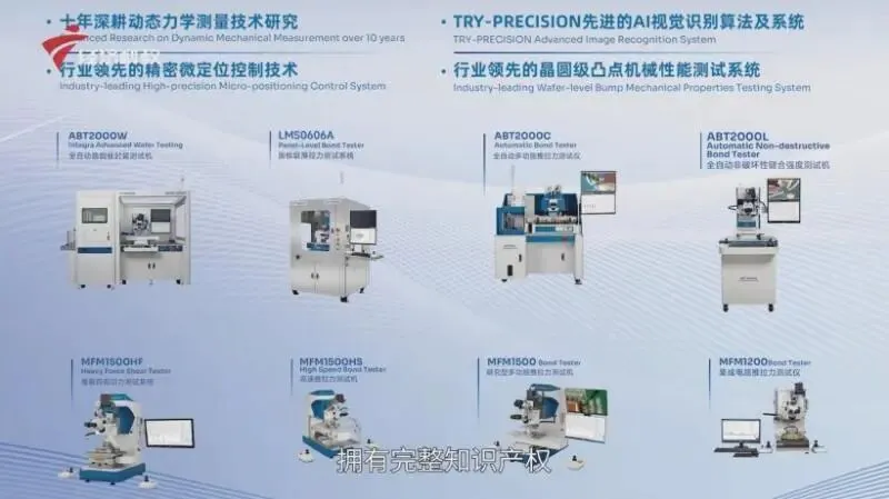 在半导体产业链加速自主可控的背景下,芯片测试装备作为产业升级的关键支撑,其重要性日益凸显。本次展会上,德瑞茵重点展示了集成电路制程领域的核心检测装备。总经理宾伟雄介绍道:“本次展会我们带来主要应用于集成电路制程的高精密动态力学检测系统,核心装备是微焊点强度测试系统MFM1200和MFM1500系列。德瑞茵所有技术自主开发,拥有完整知识产权,包括动态力学传感器、精密计量、测量控制及机器视觉等核心技术。”