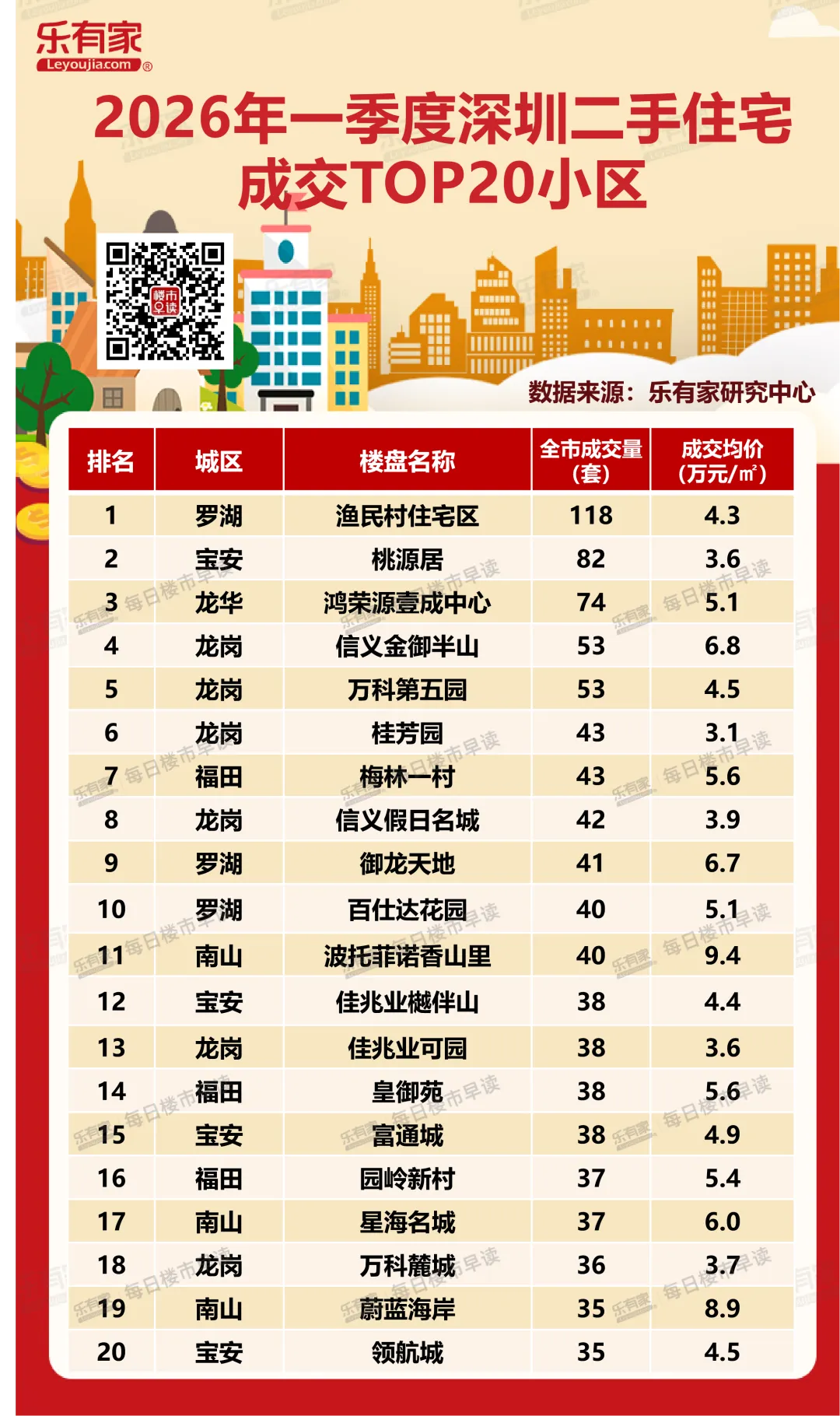 一季度深圳二手楼盘成交榜单出炉,第一名卖了118套!过半小区成交均价低于5万