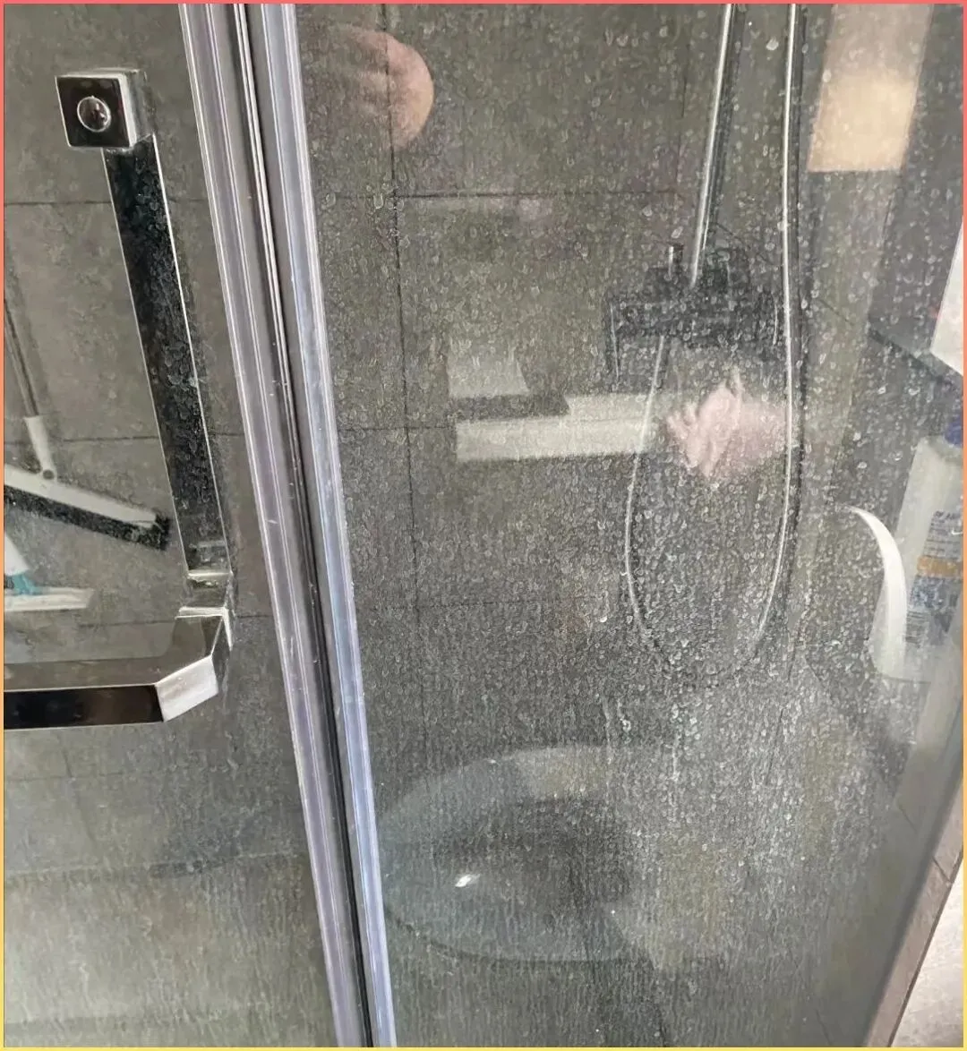 除非你每次洗完.澡都用刮水板刮一遍,否则不出一个月,玻璃上全是白花花的.水渍,像得了皮肤病一样.。