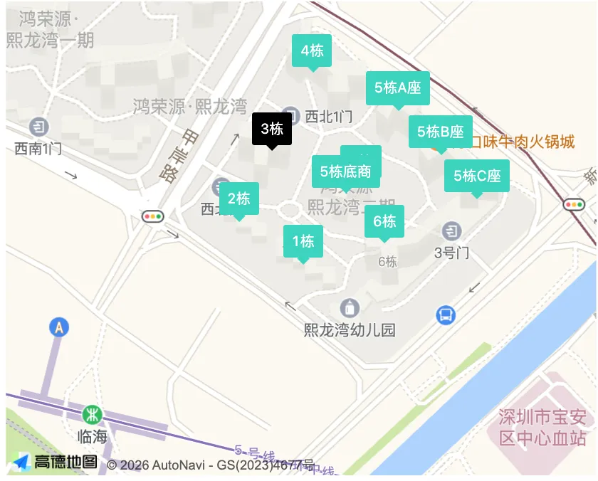 鸿荣源熙龙湾花园,这套推荐的属于二期,属广东省深圳市宝安区的新安街道办管辖,位于深圳市南方医科大学深圳医院斜对面;由深圳市鸿荣源房地产开发有限公司在2007年开建,2010年开始陆续交房入伙,小区一共9栋楼组成,总占地面积约47000平方米,总户数约771套,停车位约1130个,车子开进来有位就停,先到先得。物业服务为深圳鸿荣源物业管理有限公司,物业费约3.2元一平每月