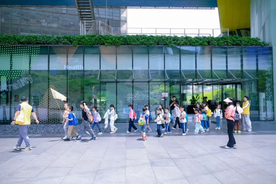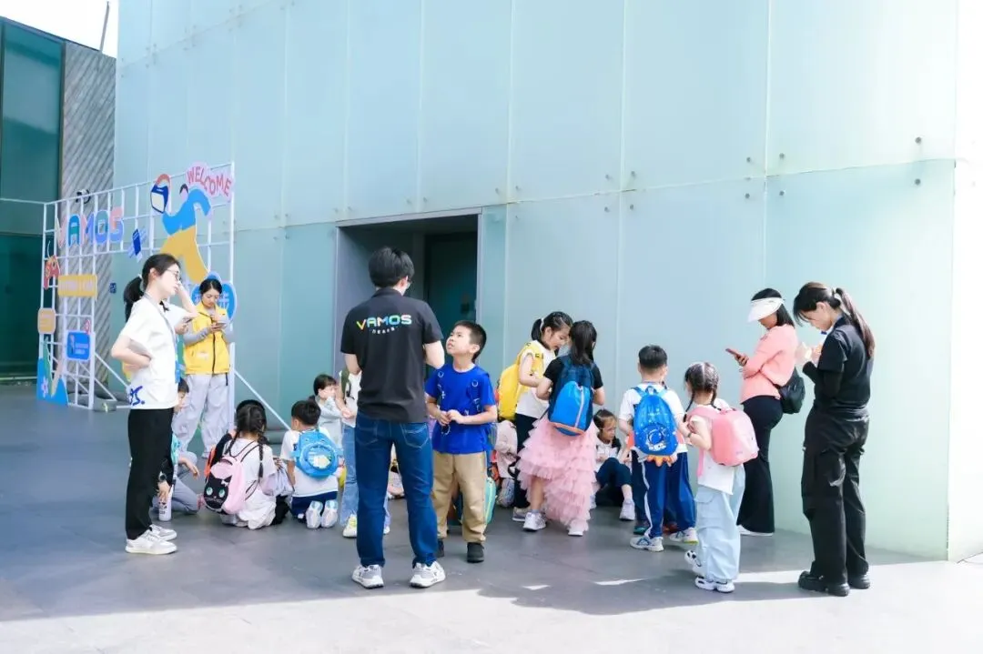 抵达深圳大鹏基地后,宝贝们首先迎来的是 “万思未来探秘课”。在九大主题实验室和地球开放空间中,他们化身为小小科学家,尽情触摸前沿科技如何改变人类生活。