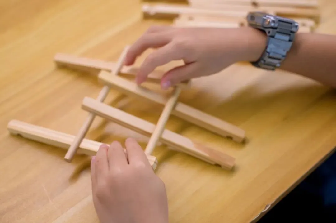 动手搭建榫卯结构的鲁班桥,感受古人的智慧与建筑的奥秘。一块块木块在宝贝们的手中巧妙组合,一座精巧的鲁班桥逐渐成型,在实践中体会到传统建筑工艺的精妙。