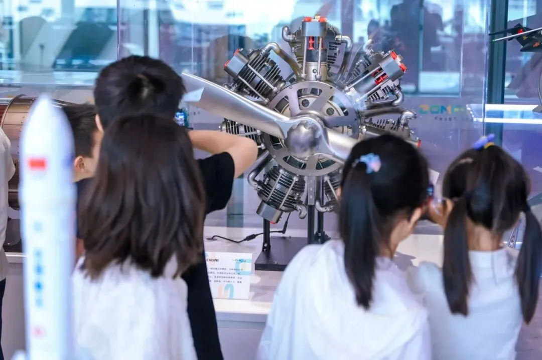 通过引擎展示了解飞机动力来源,探索天空的奥秘,心中或许已经种下了航天梦想的种子。