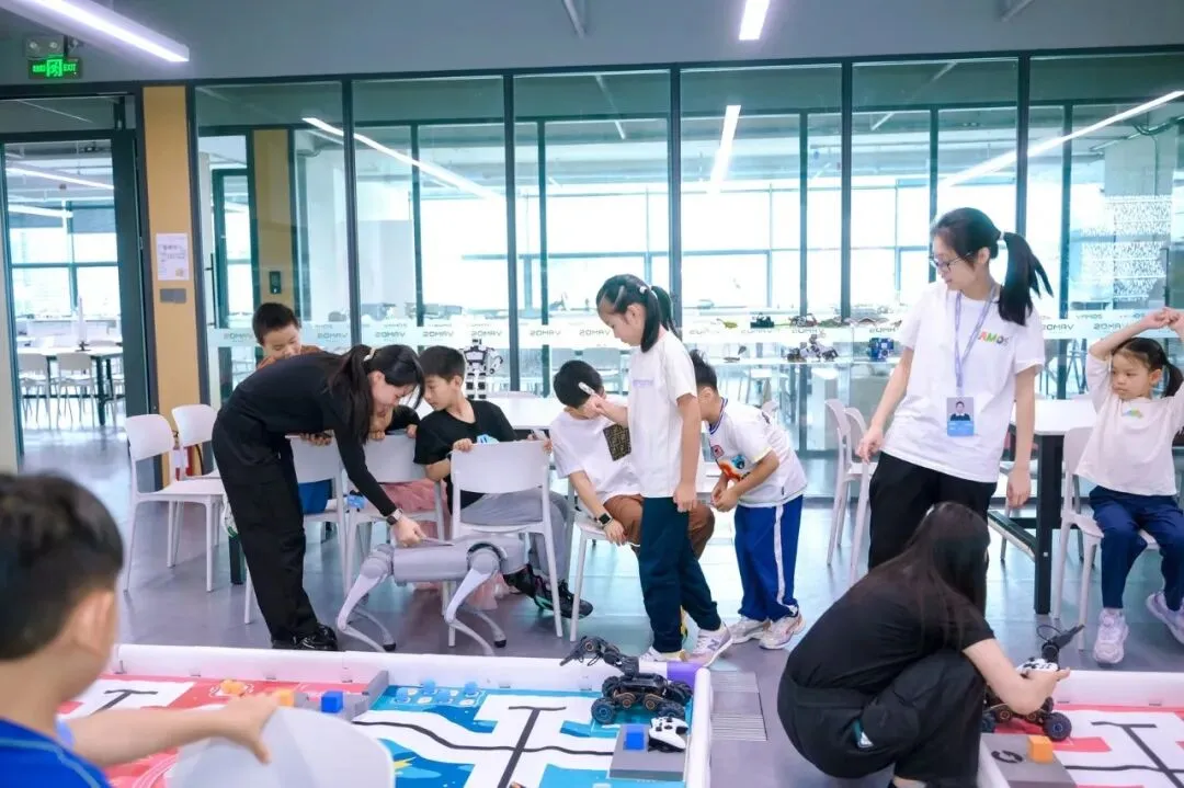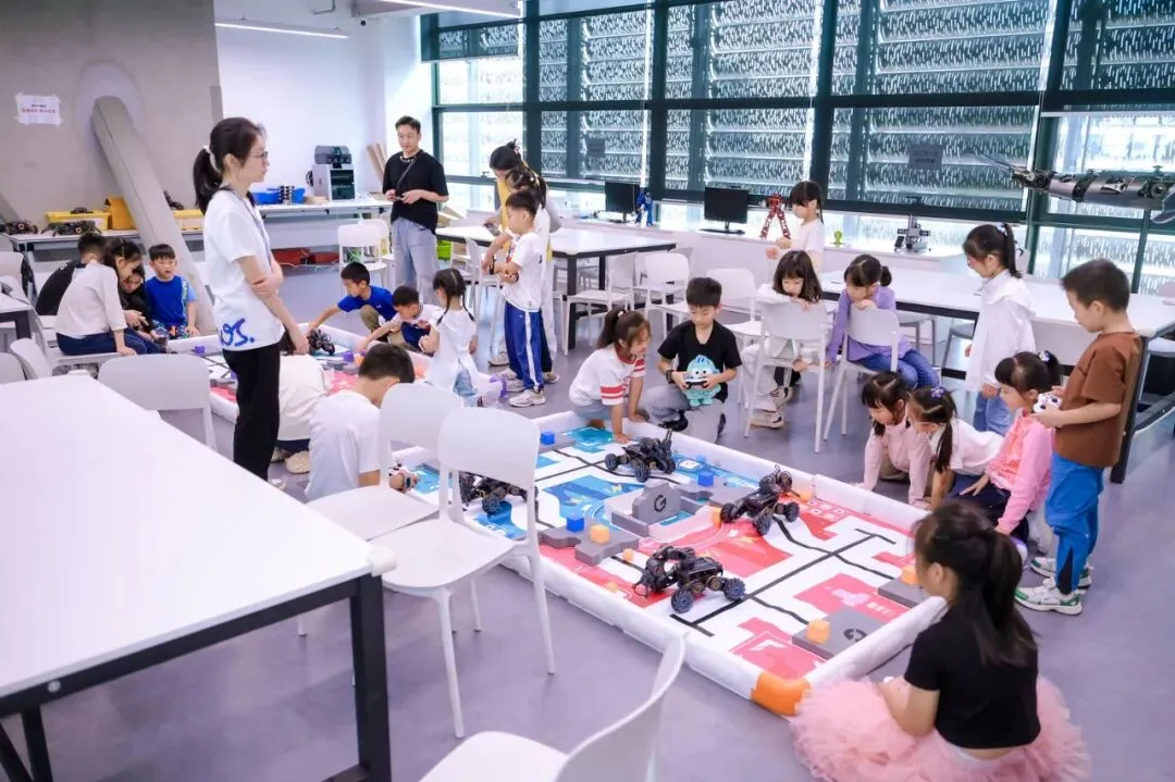 当夕阳为万科生物圈三号的水池镀上金边,孩子们操控的船模划过水面,留下一道道充满希望的波纹 —— 这一天,他们既是用积木搭建 “未来建筑” 的 “小科学家”,也是蹲在黑水虻养殖站前认真记录生态笔记的 “环保小卫士”;既能让机器人随着编程指令起舞,也能在团队协作的机甲对战中学会倾听与配合。