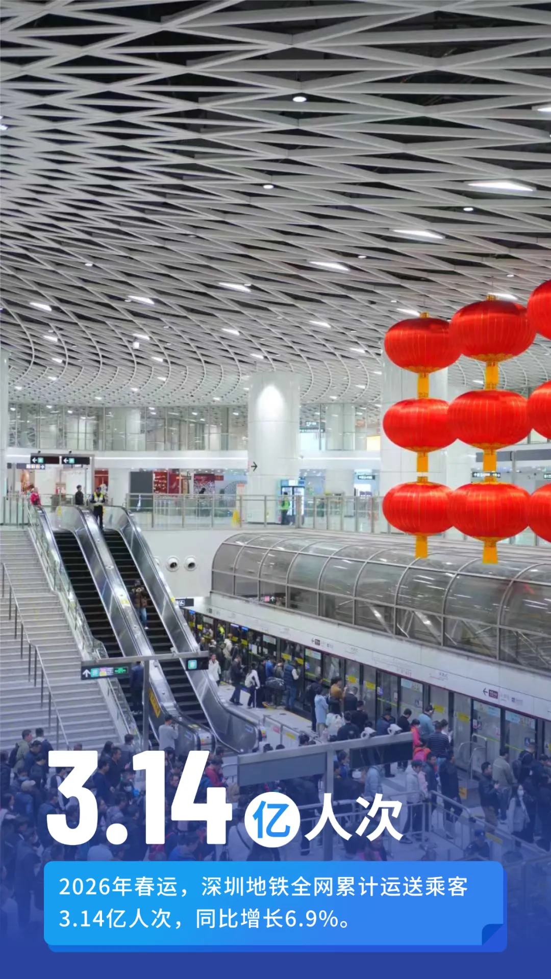 地铁客流稳步增长的背后,是城市活力持续释放与运营保障能力的不断提升——2026年元旦,深圳地铁单日客运量达1058.69万人次,同比增长18.5%,创下休息日最高客流纪录。春节假期九天,深圳跻身多家机构发布的热门目的地榜单前十,“反向过年”热潮带动地铁全网日均客运量同比增长9.6%。