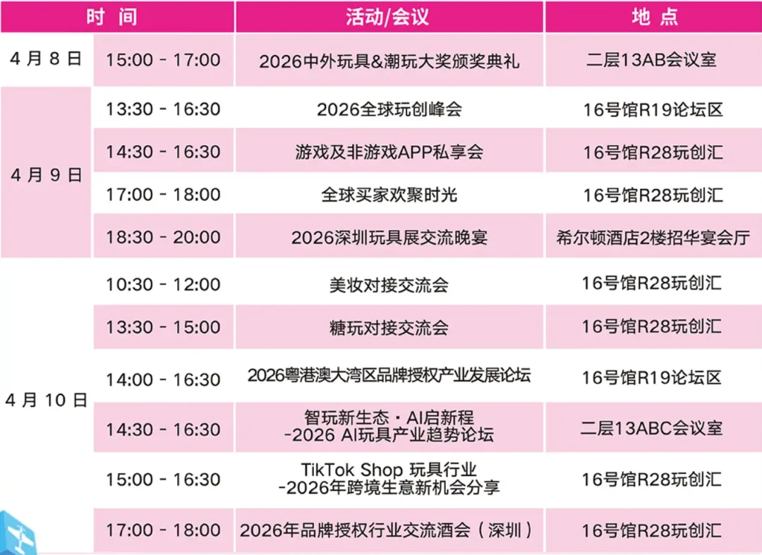 2026年4月9-11日,第7届国际授权及衍生品(深圳)展览会将在深圳国际会展中心(宝安区)举办。同期举办第38届国际玩具及潮玩(深圳)展览会、第17届国际童车及母婴童用品(深圳)展览会(3展统简称“深圳玩具展&潮玩展”)