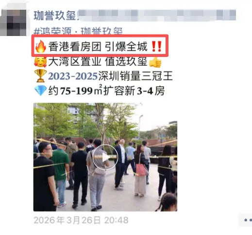 有鸿荣源的销售发朋友圈说,“香港看房团,引爆全城。”