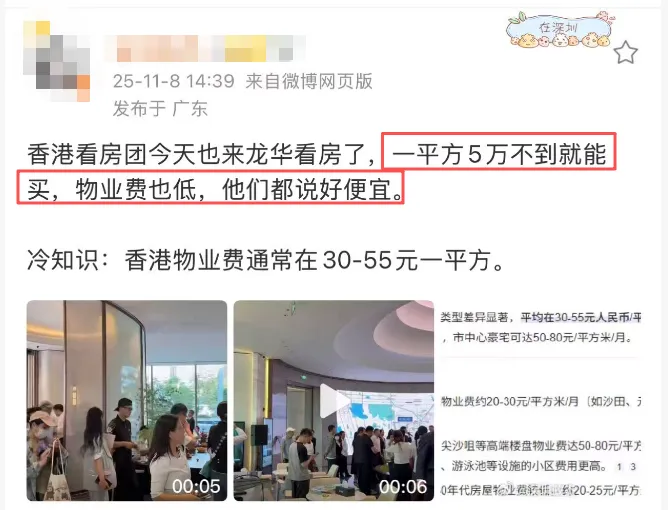 据当时爆料说,香港购房团有买家表示,一平方5万不到就能买,物业费也低,觉得好便宜。