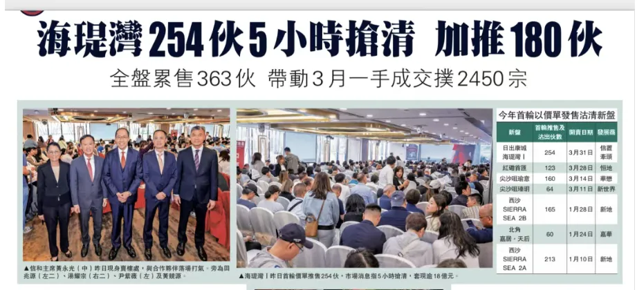 香港的启德、将军澳等板块热门新盘,开盘即售罄。