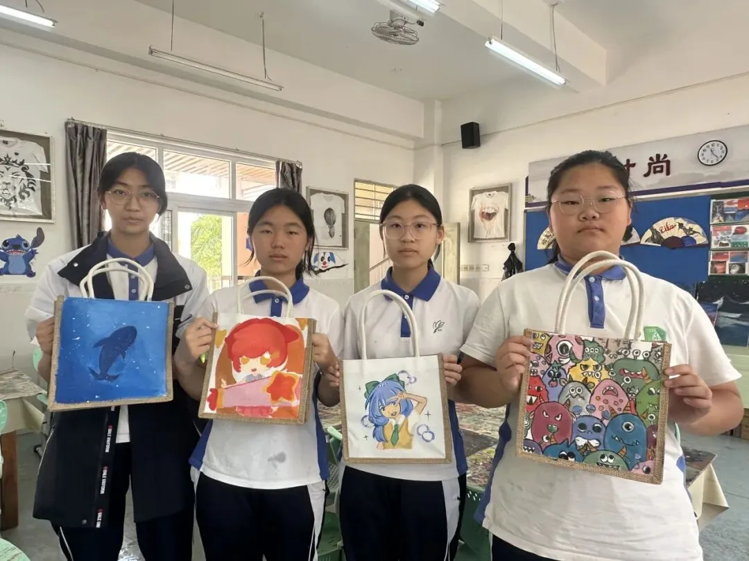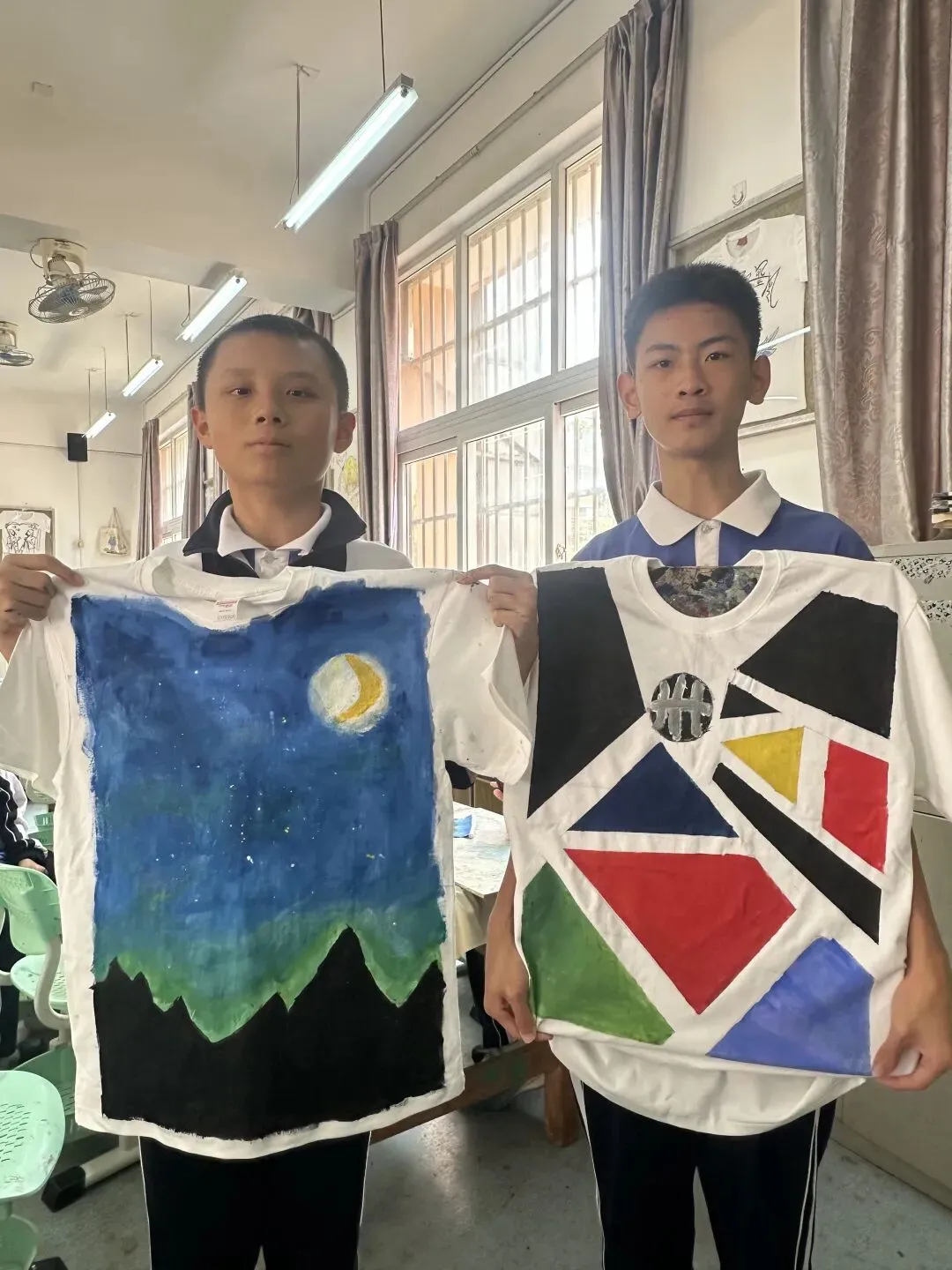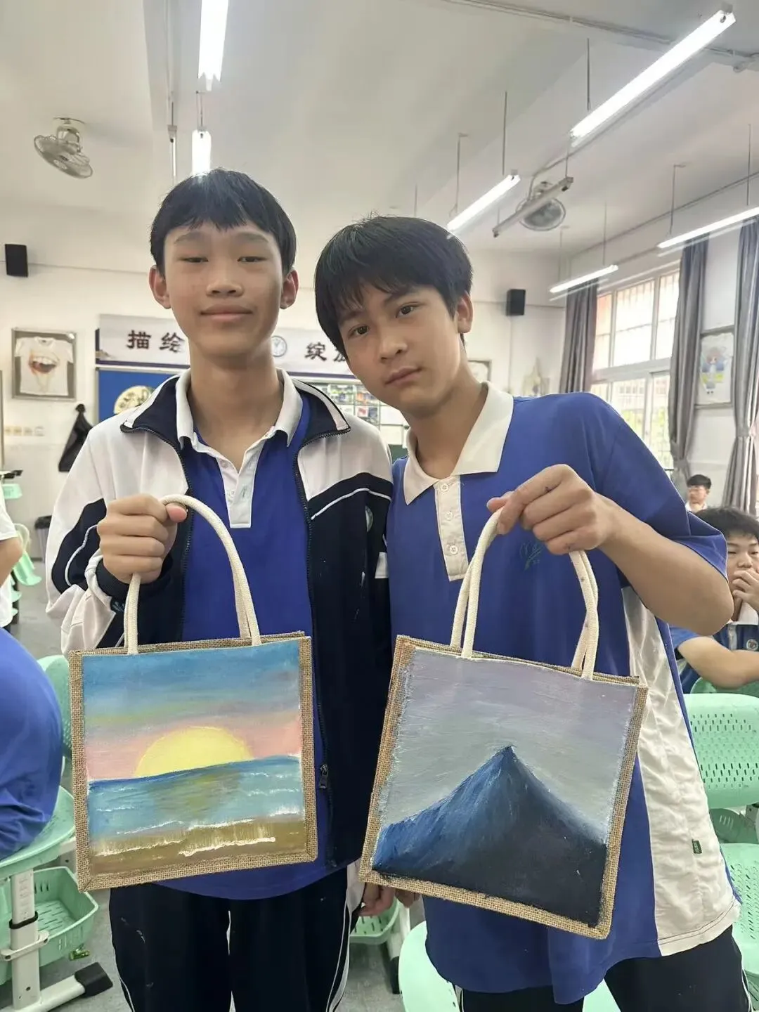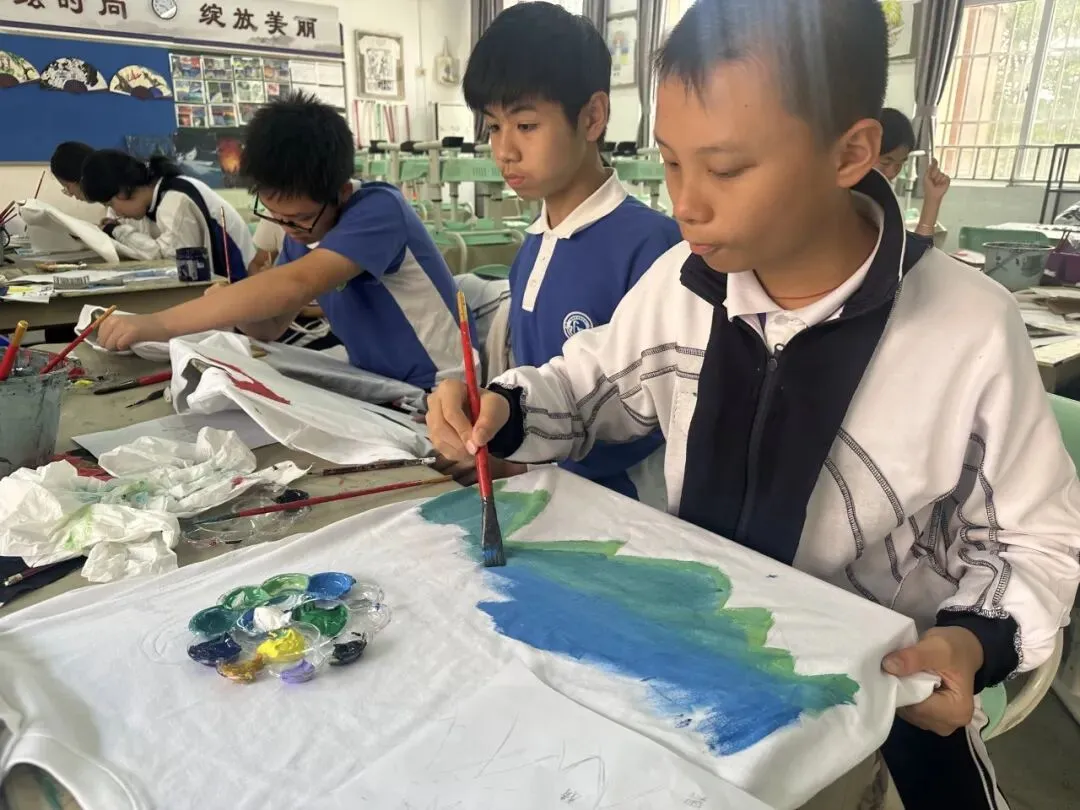 当颜料干透、作品亮相,同学们穿着手绘T恤、拿着专属折扇、提着独一无二的帆布袋,成就感满满地分享创作故事,在欢声笑语中收获成长。