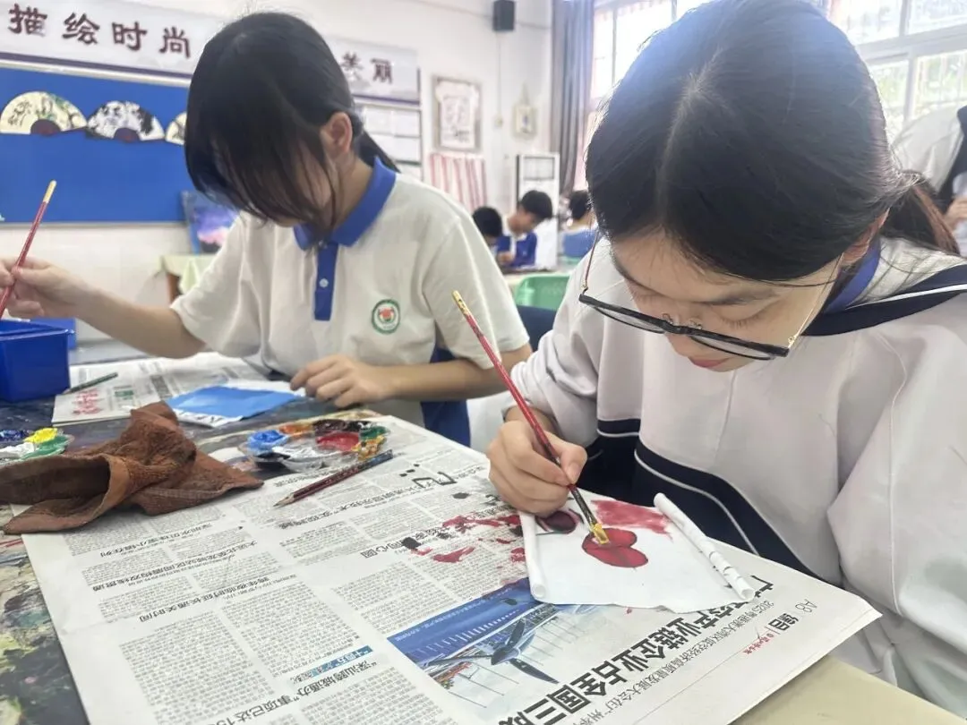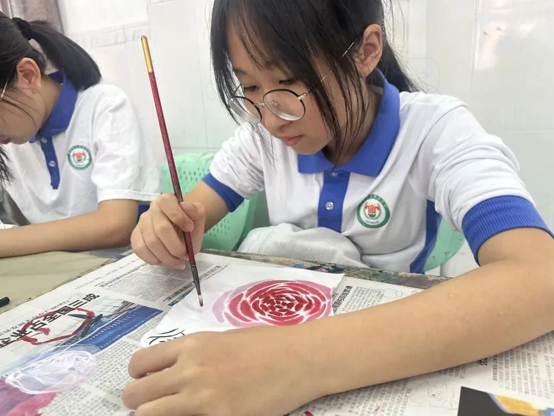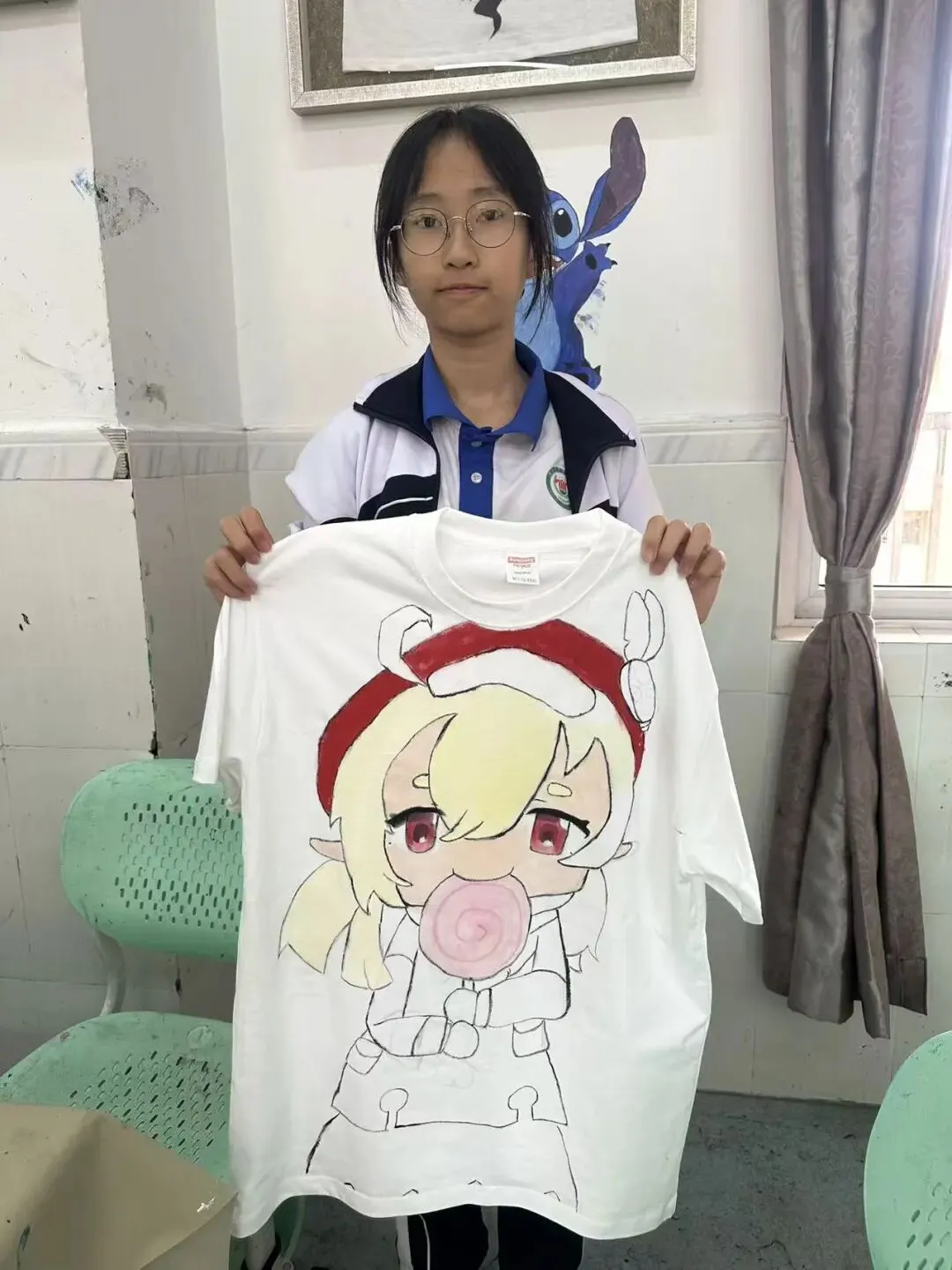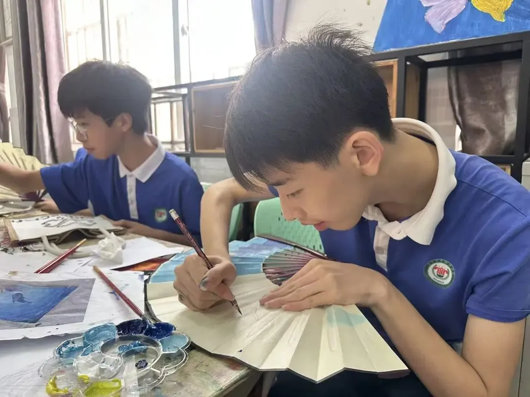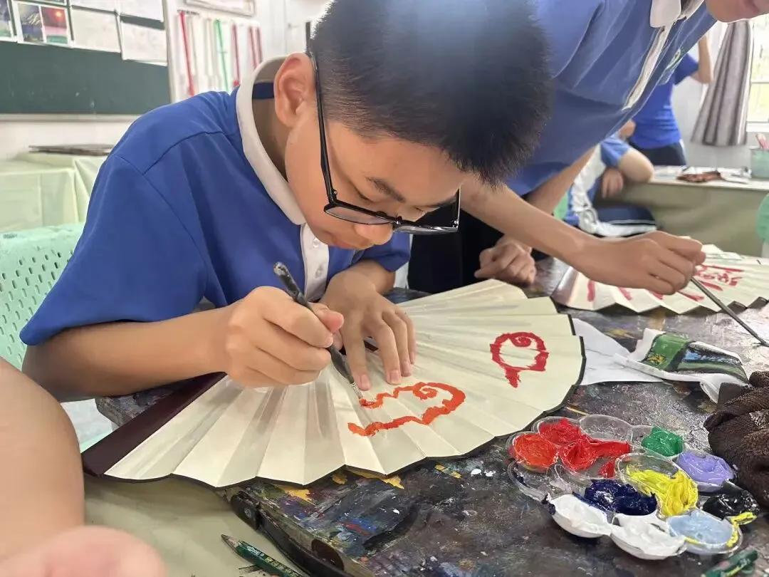 当颜料干透、作品亮相,同学们穿着手绘T恤、拿着专属折扇、提着独一无二的帆布袋,成就感满满地分享创作故事,在欢声笑语中收获成长。