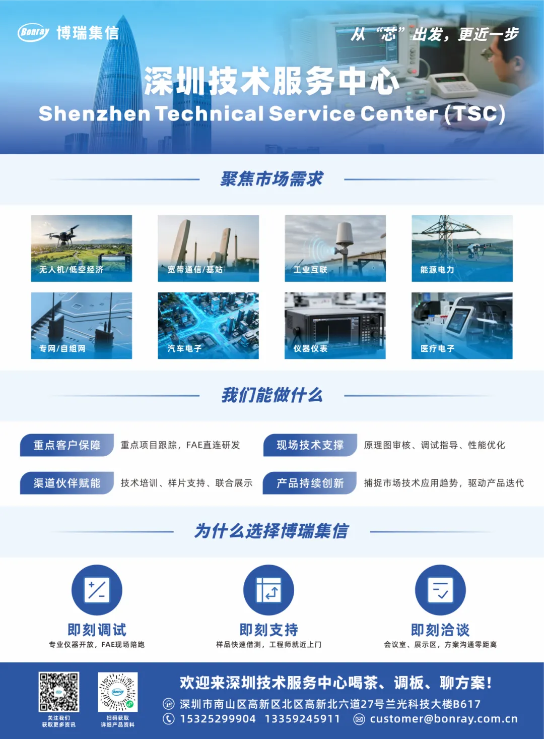 博瑞集信深圳技术服务中心正式启用。我们聚焦市场需求,以重点客户保障、现场技术支撑、渠道伙伴赋能、产品持续创新四大服务为核心,做到“即刻测试、即刻支持、即刻洽谈”,让技术响应更快、更专业、更贴近。欢迎各位伙伴来喝茶、调板、聊方案!