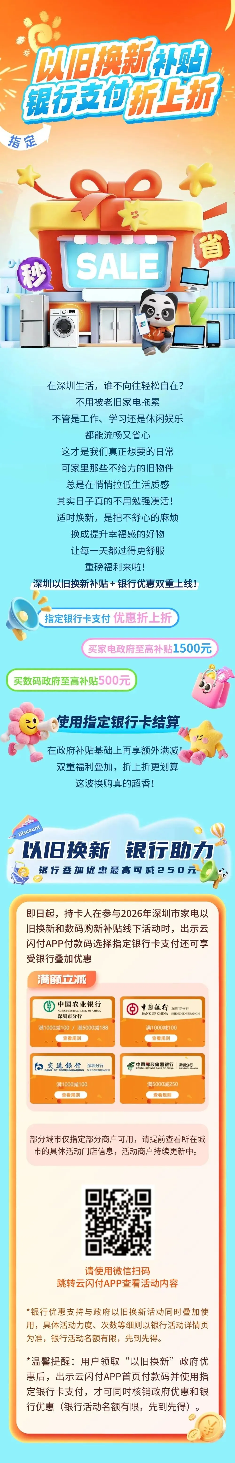 >深圳人速看!家电以旧换新,政府补贴+银行直减双重福利,折上折更省!
