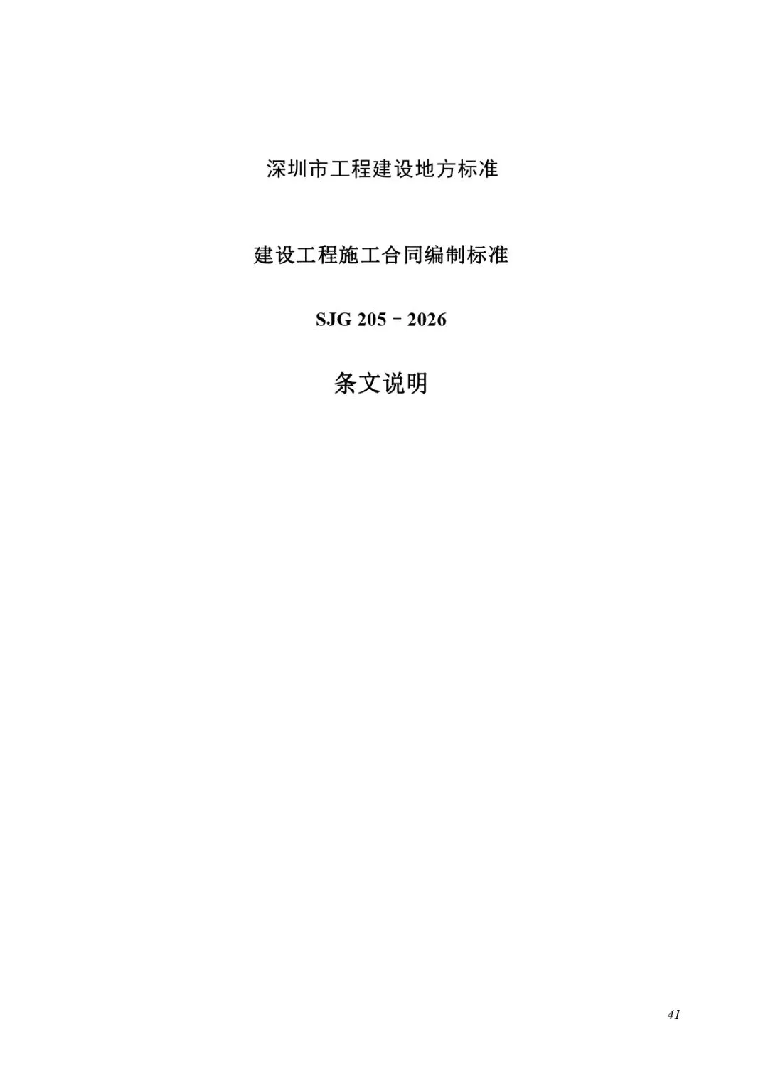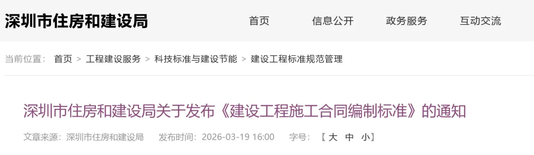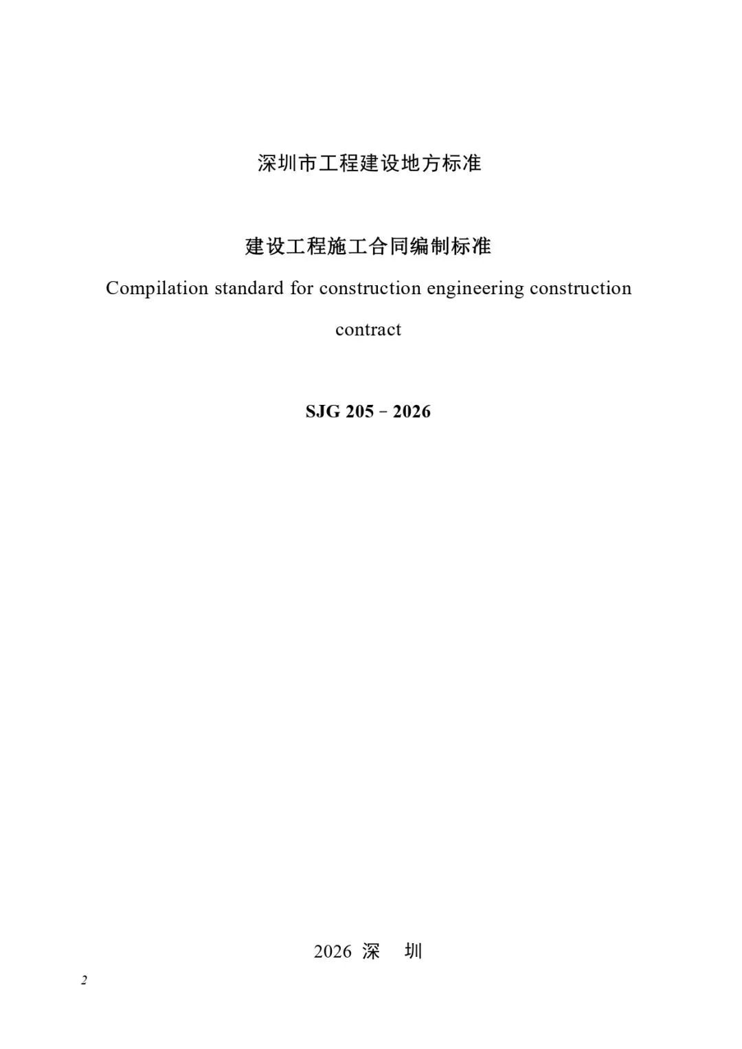 现批准《建设工程施工合同编制标准》为深圳市工程建设地方标准,编号为SJG 205-2026,自2026年5月1日起实施。标准文本可在深圳市住房和建设局门户网站下载。