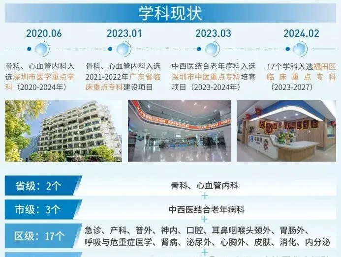 医院坚持以患者为中心,以学科建设为工作主线,立足中山大学「双一流」战略布局,着力打造「高精尖国家队」。全面提升医疗服务能力,形成了创伤及骨病、心血管及代谢病、肿瘤三大学科群,打造河套深港科技创新合作区科研平台、精准医学中心和转化研究中心三个支撑平台。依托 31 家社康,构建 5 G+AI 赋能「医院-社康-家庭」慢病管理新模式,形成「顶天立地促健康」的全民健康服务体系。