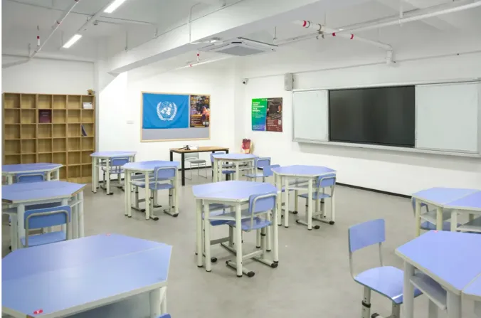 深圳实验学院国际教育基地位于深圳市宝安区塘头大道13-66号,距深圳实验学校高中部15分钟车程,毗邻深圳八景之一的阳台山国家森林公园,傍临深圳境内的最大水库铁岗水库(国家二级水源保护区),建筑面积达4.4万平方米,包括常规教室68间,学生宿舍285间,研创教室17间,艺术教室32间,机器人场地4间,运动场馆多个(篮球场、网球场、足球场、羽毛球场、室内高尔夫练习场、健身房等)、图书馆、专业的剧场、中西餐厅等,充分满足学生学习及生活需求。