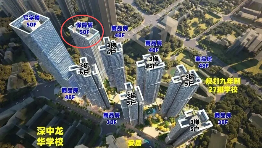 小区内部就配建了一所 12班制的幼儿园,孩子三四岁时,每天走下楼就能上学,家长不用早起远送。而在项目周边,已经有深圳中学龙华学校等多所公办及民办学校,覆盖小学、初中乃至高中。
