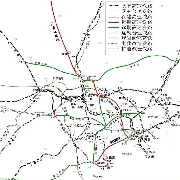 广东省“十五五”规划中,确定开工或作为优先建设的高铁项目主要包括广清永高铁、广深第二高铁、深珠高铁、广珠澳高铁(横琴至鹤洲段)其中两条高铁都和深圳有关,深圳成了“十五五”规划的大赢家。广深第二高铁衔接广清永高铁形成深永高铁,深珠高铁串联珠肇高铁构成深南高铁,两条线路的建设,不仅让深圳的高铁网络向大西南、北部湾方向大幅延伸,更让深圳从华南区域铁路枢纽,稳步跻身全国性综合铁路枢纽核心梯队,其在国家“八纵八横”高铁网中的节点价值和战略权重实现质的提升,枢纽辐射力和连接性也迎来全方位升级。