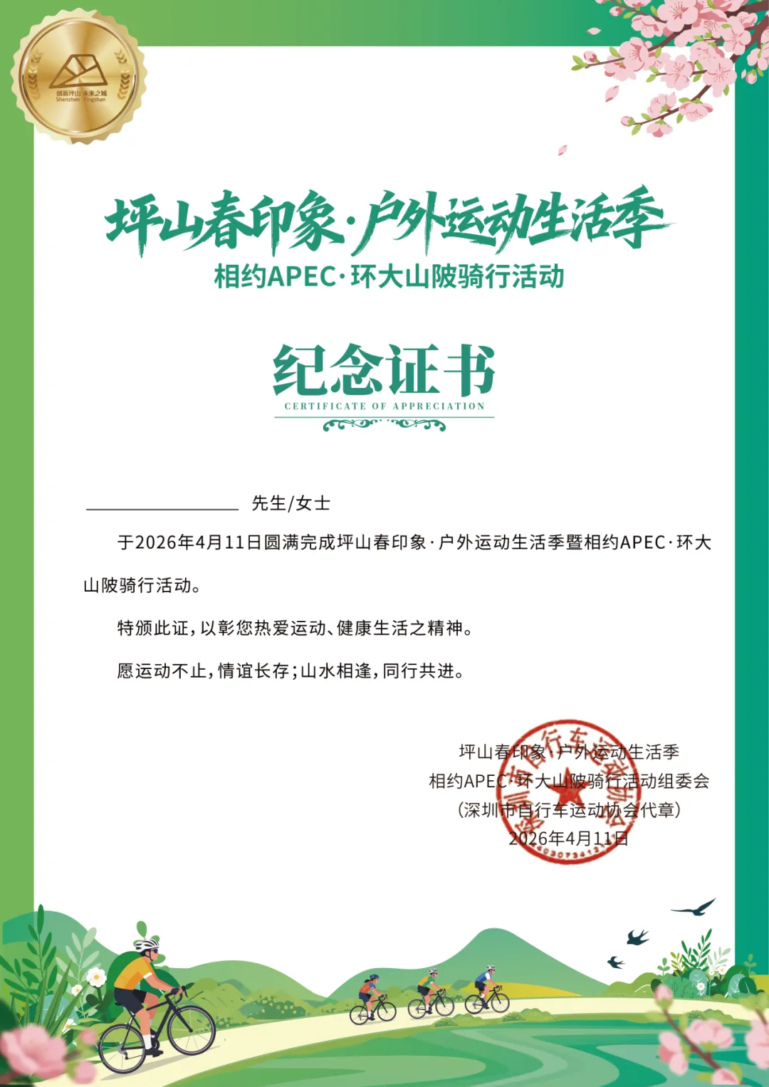 活动规模250人,由坪山文旅局主办、坪山文体服务中心承办的【环大山陂水库骑行活动】将于2026年4月11日8:30-12:30在坪山体育中心体育馆举行。本次活动不限地区、不限国籍,福利满满,快随小圈来一起了解下细节吧!