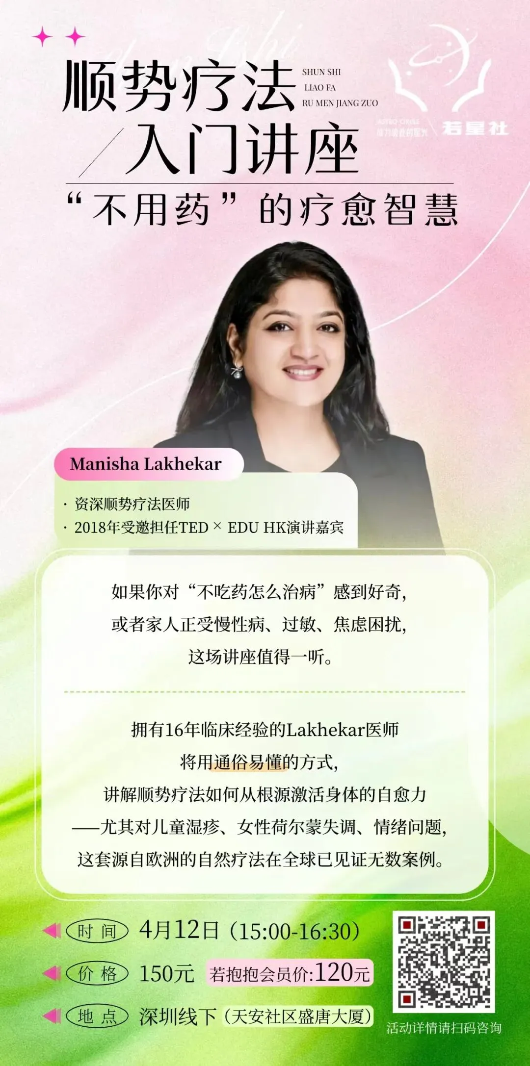 如果你对“不吃药怎么治病”感到好奇,或者家人正受慢性病、过敏、焦虑困扰,这场讲座值得一听。拥有16年临床经验的Lakhekar医师将用通俗易懂的方式,讲解顺势疗法如何从根源激活身体的自愈力——尤其对儿童湿疹、女性荷尔蒙失调、情绪问题,这套源自欧洲的自然疗法在全球已见证无数案例。