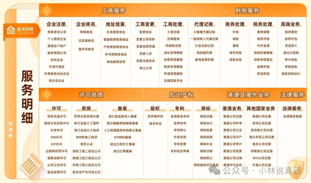 核心优势:全国18家分公司,2015年成立至今,给30万家企业解决了工商财税等问题。