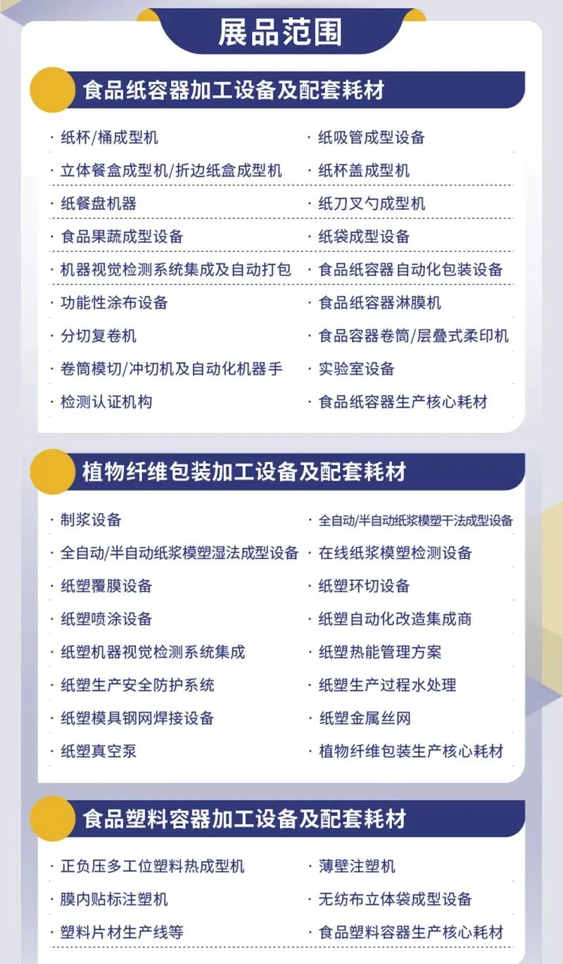 纸杯/桶成型机、纸吸管成型机、纸杯盖成型机、纸刀叉勺成型机、高速纸杯检测设备、立体餐盒成型机、卷筒模切/冲切机、食品纸容器淋膜机等