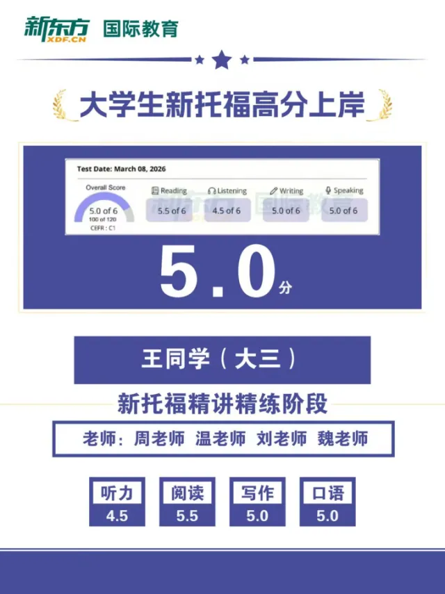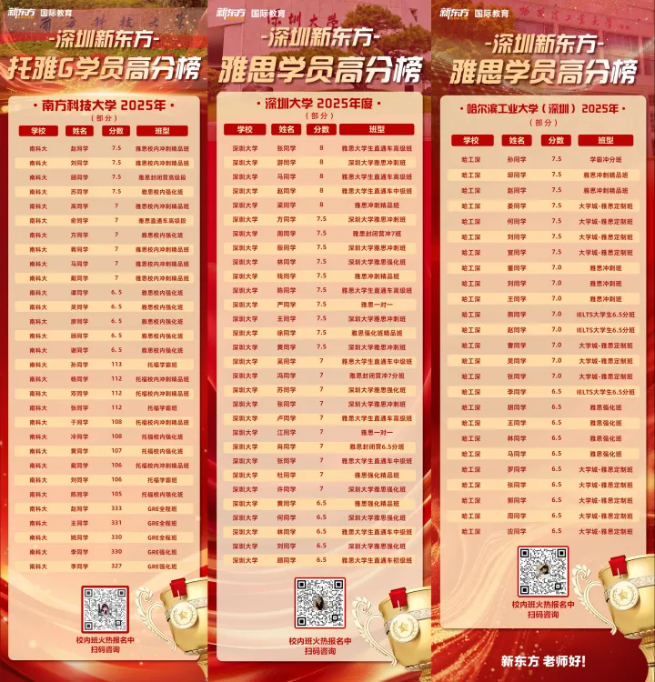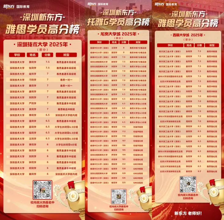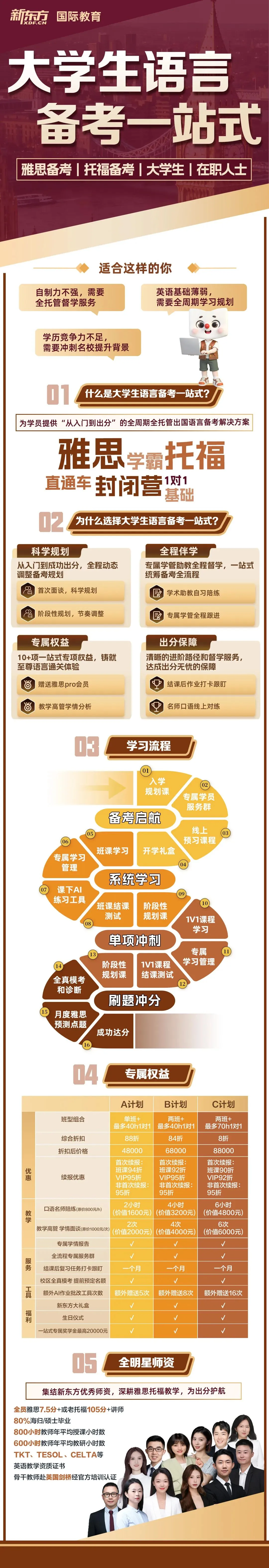 深圳新东方大学生雅思 / 托福一站式备考方案,专为大学生及在职群体打造,集课程、规划、督学、增值服务于一体,实现从入门到出分全周期托管。