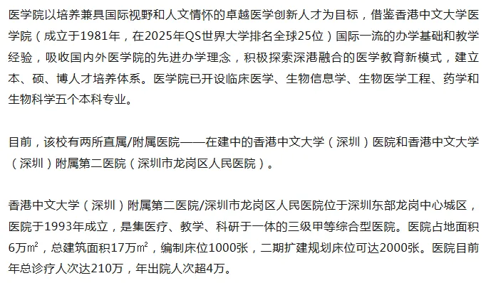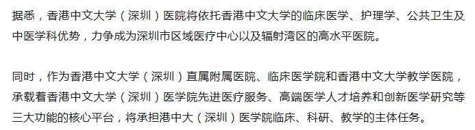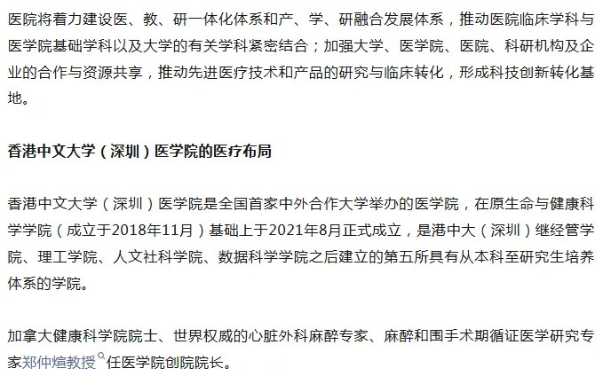 2021年底,香港中文大学(深圳)与龙岗区人民政府签订合作共建附属医院协议,明确龙岗区人民医院作为香港中文大学(深圳)附属第二医院进行建设。
