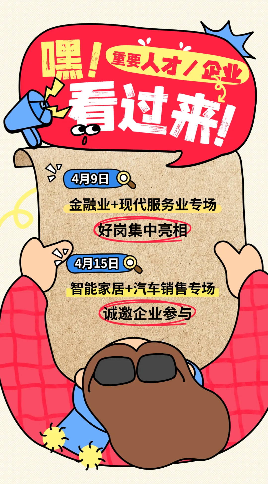 〔深圳招聘〕好多好岗位!深圳两场招聘会预告!4月9日金融业+现代服务业专场,还有4月15日智能家居+汽车销售专场