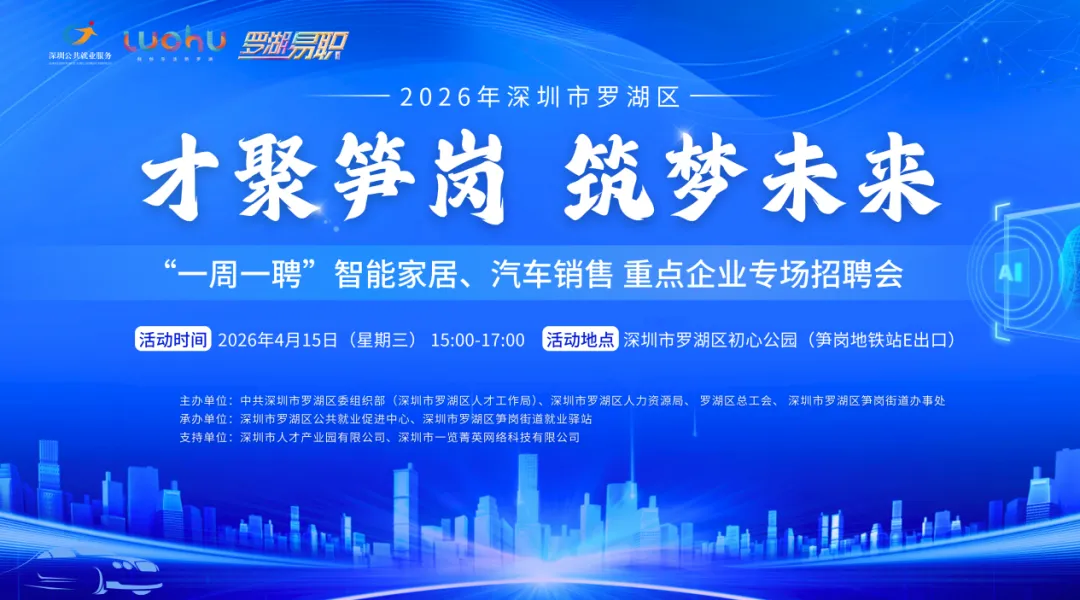 宝能·第一空间是罗湖区首批“智能家产业园区”,本场招聘会在紧邻的初心公园举办,重点聚焦智能家居、新能源汽车销售两大核心领域,邀请相关优质企业现场揽才,实现产业场景与人才招聘的深度融合。