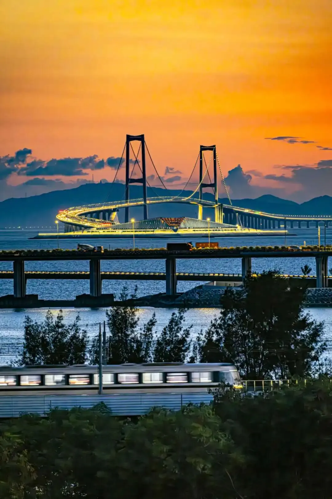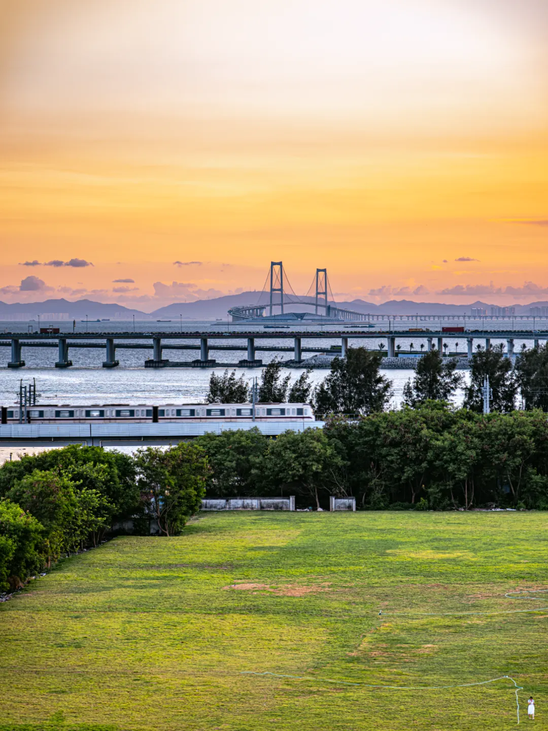 列车与夕阳同框浪漫直接拉满