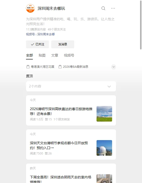 都可以在【深圳周末去哪玩】公众号查看