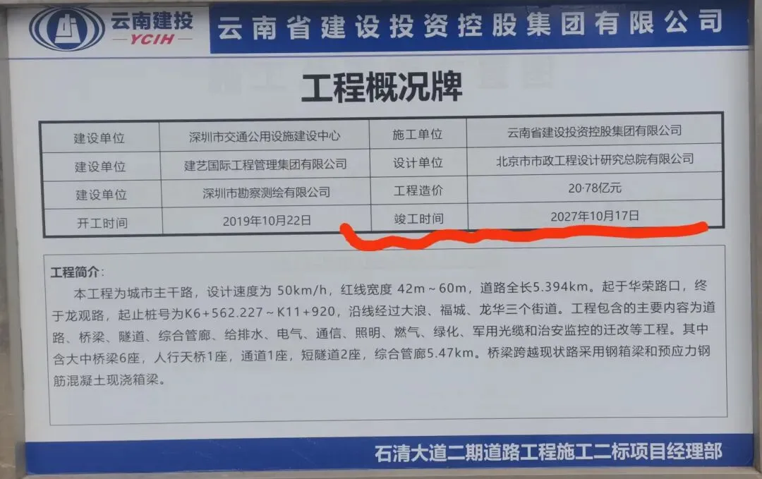 由于石清大道(龙观大道至龙澜大道段)涉及到机何(G15沈海)高速改扩建工程红线范围调整,观澜大道改扩建工程,福民收费移位新建等路网规划建设影响。今年,石清大道建设被移出(深圳市2026年重大项目建设计划清单),简单的来说石清大道已经被市发改委踢出去了,以后什么时候能重启复工建设,要等机何高速、龙澜大道改扩建及福民收费移位新建等施工进度来决定。