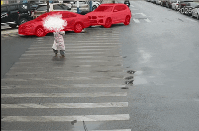 ▲黑色小车斑马线前违停形成“视觉盲区”。