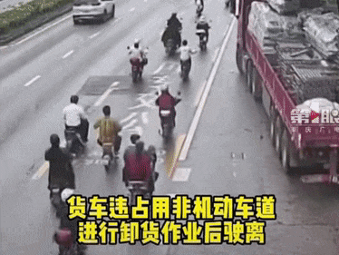 ▲货车占用非机动车道,电动车被迫驶入机动车道,导致事故发生。
