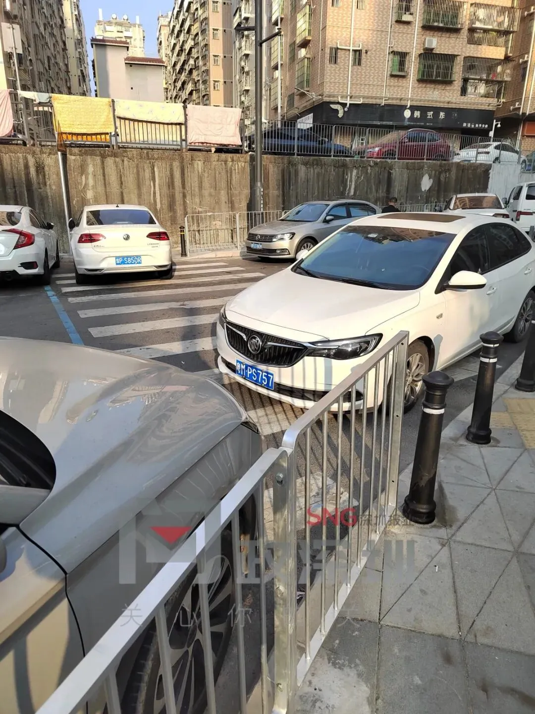 ▲车辆违停黄方格上,乘客下车造成“开门杀”。